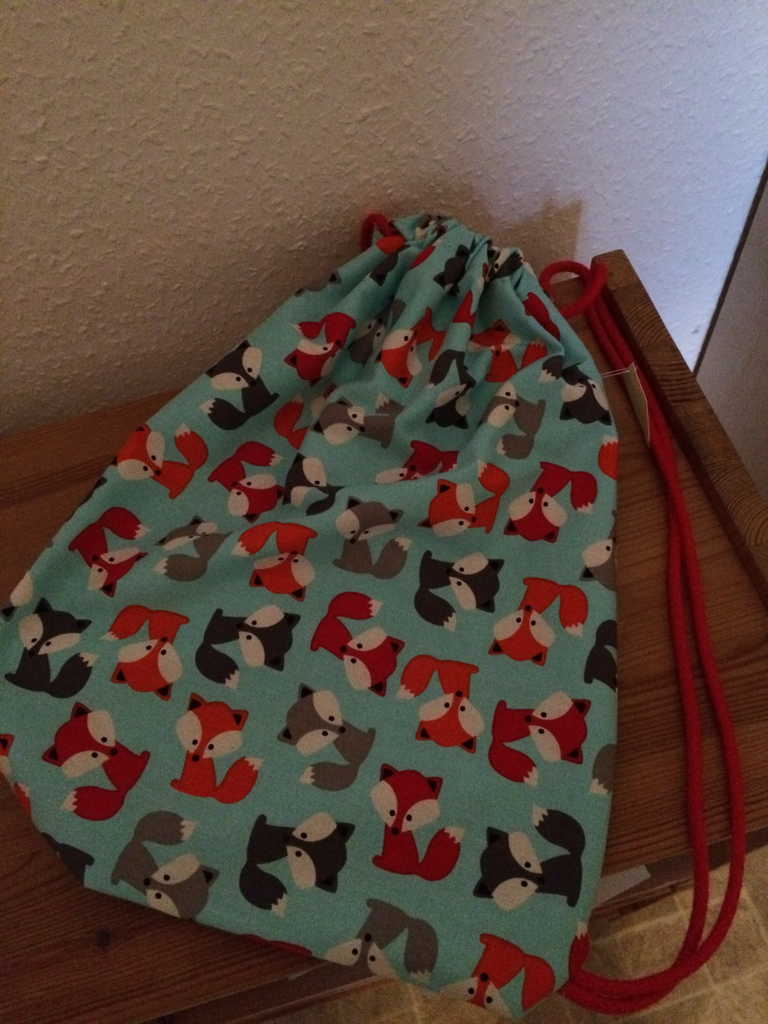 Mit bunter Kordel, kann über der Schulter oder auf dem Rücken getragen werden